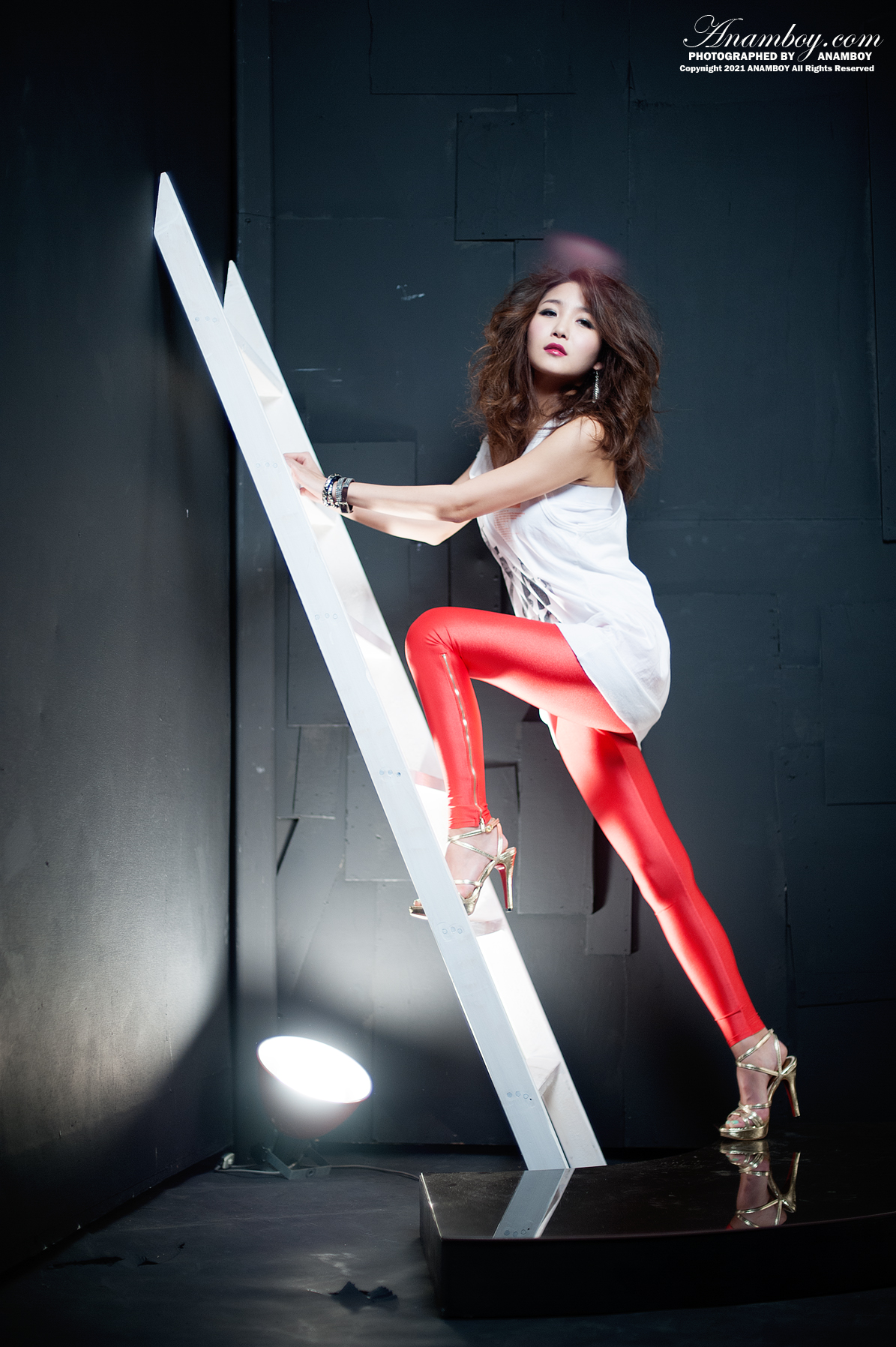 아무나 소화 할 수 없는 강렬한 빨강 팬츠와 사자머리 컨셉 방은영