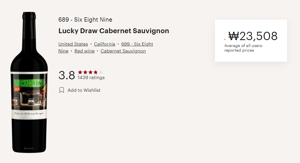 689 럭키드로 까베르네 쇼비뇽, Lucky Draw Cabernet Sauvignon