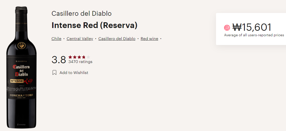 이상으로 오늘의 와인 Casillero del Diablo Intense Red였습니다.