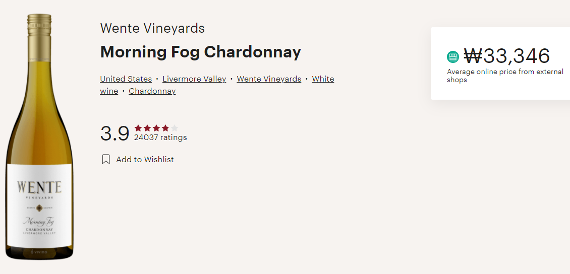 웬티, 모닝 포그 샤도네이 Wente, Morning Fog Chardonnay