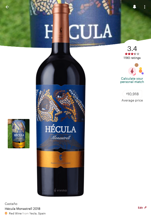 이상으로 오늘의 와인 Hecula Monastrell 2018 였습니다.