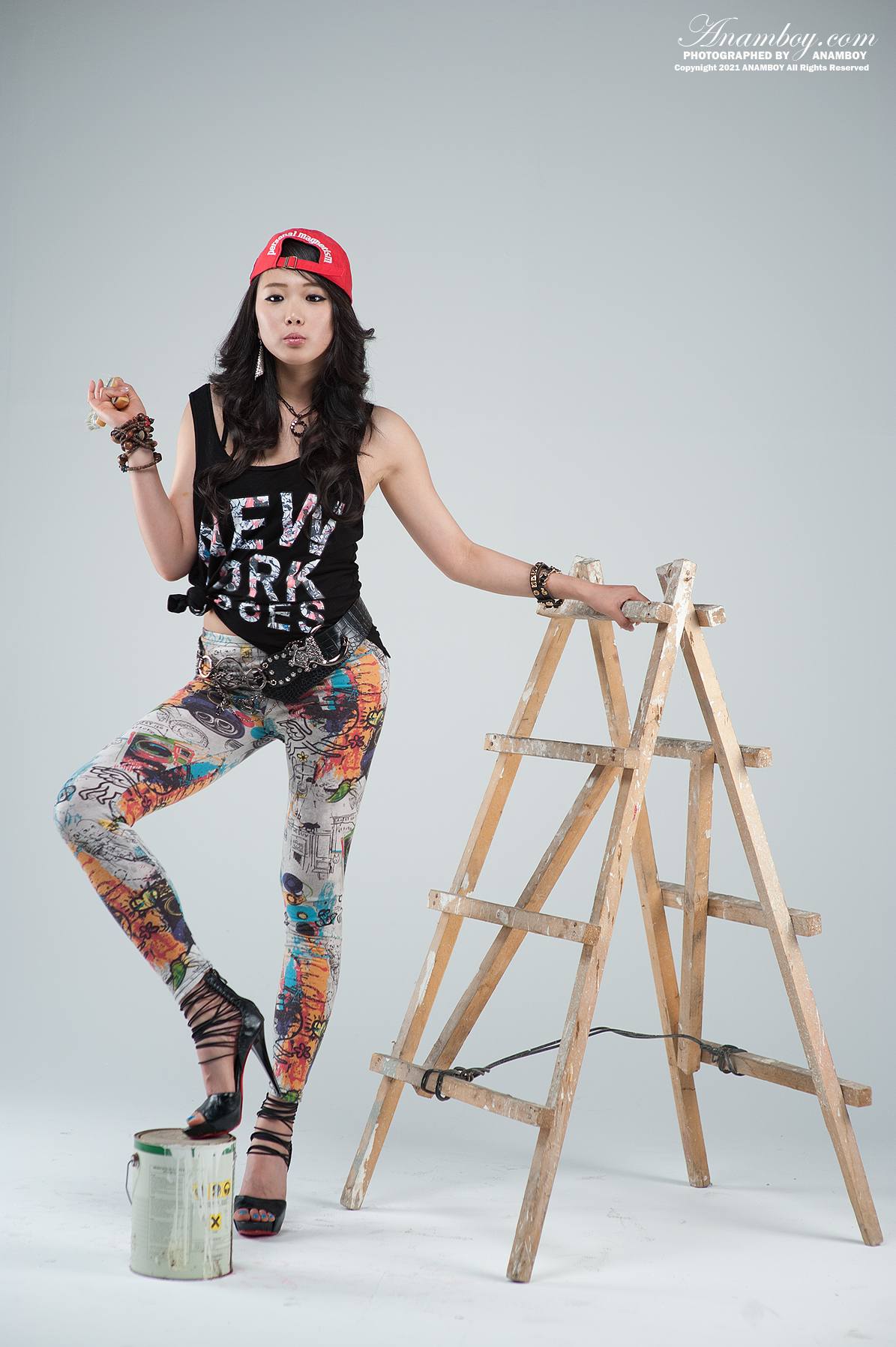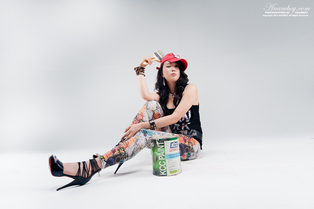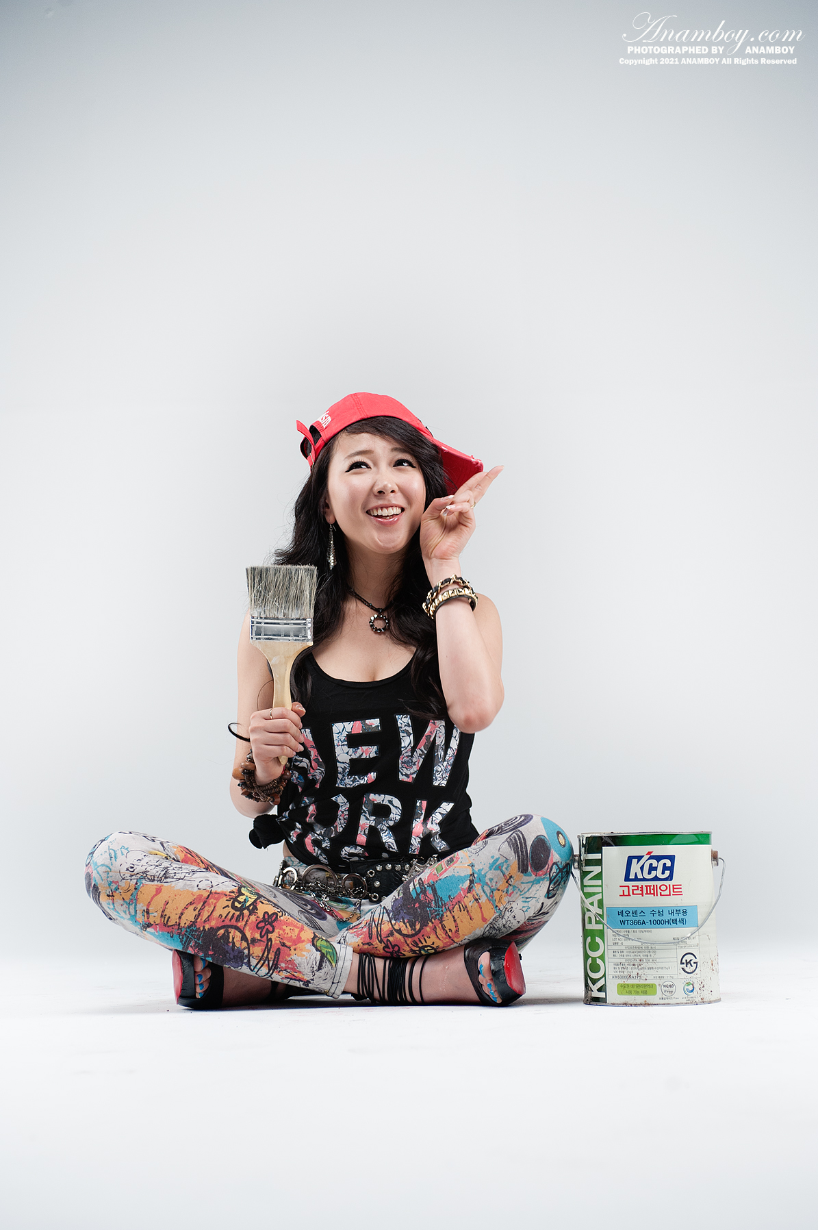 컬러풀한 팬츠 빨간모자의 미녀 페인트공 모델 김진아