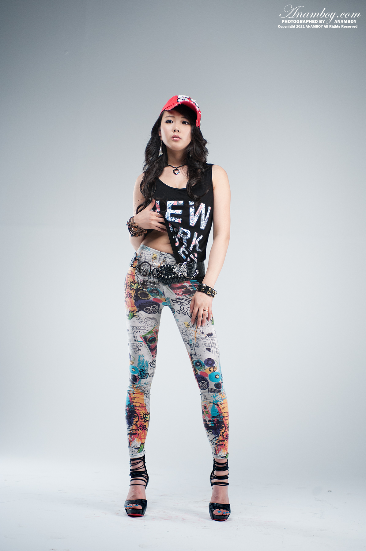컬러풀한 팬츠 빨간모자의 미녀 페인트공 모델 김진아
