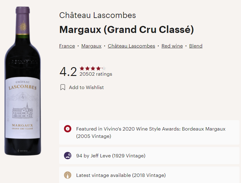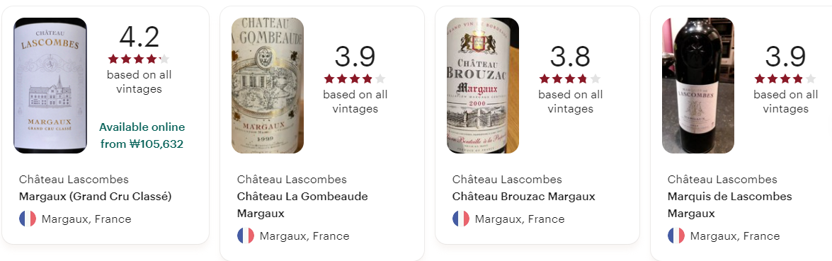 (출처: 비비노 Vivino, 네이버 지식백과, www.chateau-lascombes.com)
