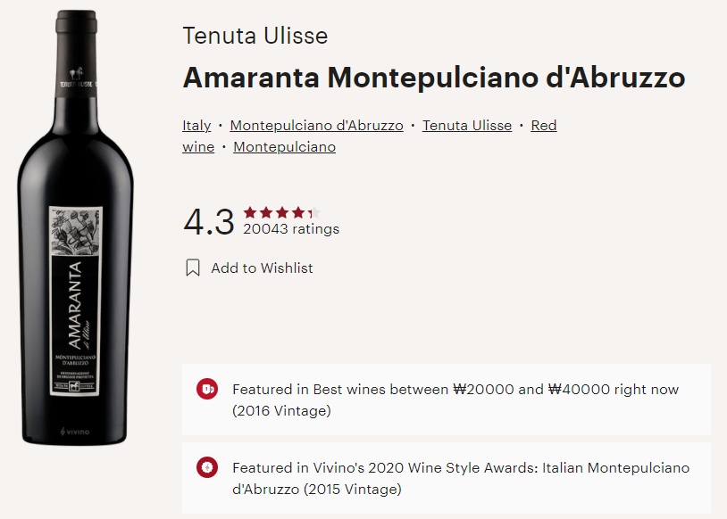 아마란타 몬테풀치아노 다브루쪼 Amaranta Montepulciano d'Abruzzo