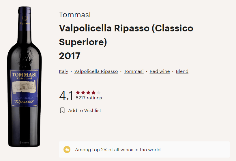 4. 와인 랭킹 : 세계랭킹 2% , Valpolicella Ripasso 6%