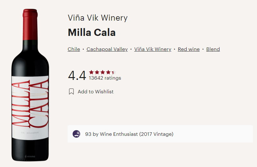 밀라 칼라 Milla Cala 칠레 레드 와인으로 밝은 루비색을 띠고 있습니다. 검은 과실류의 풍미를 느낄수 있는 와인으로 달콤한 과일과 초코릿, 자두의 맛이 입안에서 가득 느껴집니다. 타닌과 산도가 균형을 이루어 맛있다는 느낌을 바로 얻을 수 있습니다. 세계 1% 랭킹에 있는 와인으로 그만큼의 가성비를 자랑하는 와인입니다. 다만 가격이 좀 높은편입니다.