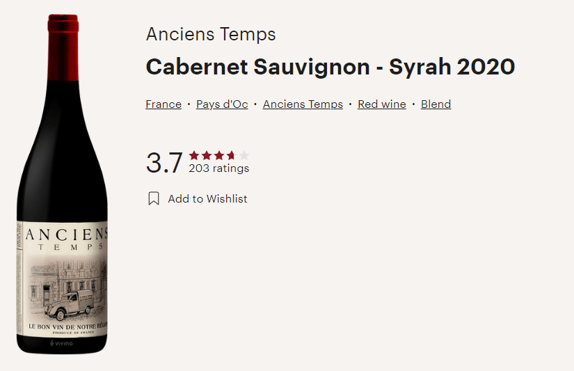 앙시앙 땅 까베르네 시라 , Anciens Temps Cabernet Syrah