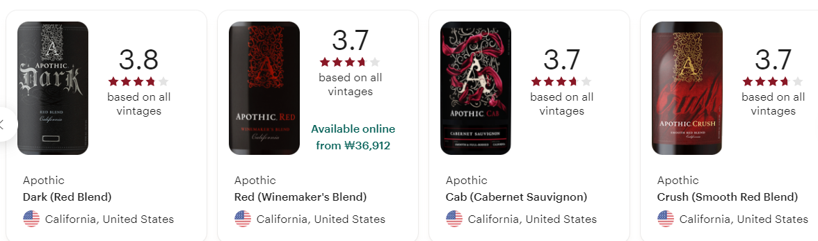 아포틱 Apothic Wines 에서 생산되는 와인