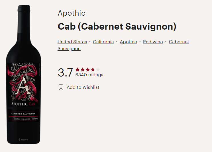 아포틱, 카버네 소비뇽 Apothic, Cabernet Sauvignon