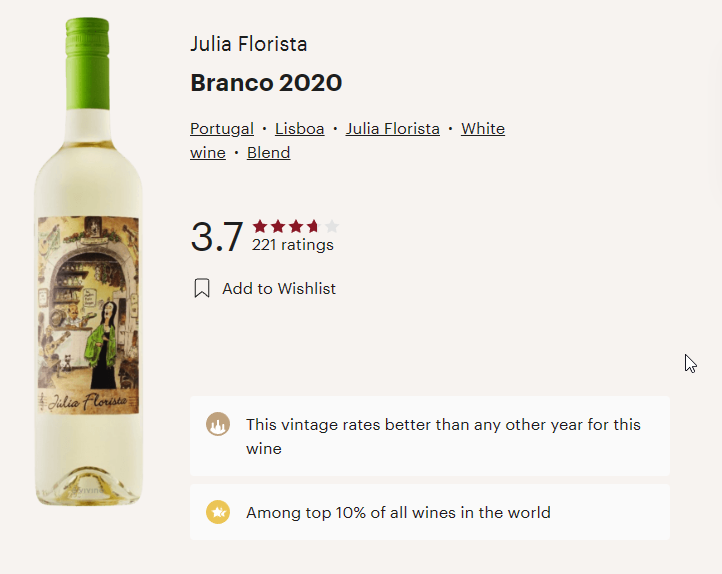 Julia Florista Vinho Regional Lisboa 2020 줄리아 플로리스타 화이트