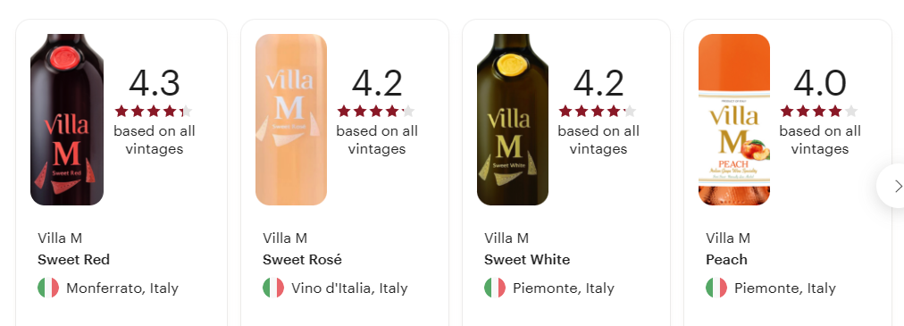 100% 모스크바 소재 빌라 엠 골드는 밝은 황금색을 띠고 있으며, 풍부한 과일 향이 담긴 모스크바의 향긋한 꽃과 오렌지 꽃의 향이 매력적이다. 살아있는 것처럼 튕기는 생동감 넘치는 거품이 청량감과 풍부한 당도를 갖춰 달콤하고 균형 잡힌 맛을 느낄 수 있다. 파이, 헤이즐넛 케이크 등 간단한 디저트는 물론 치즈가 들어간 마리아주, 매운 음식 등에도 탁월하다. 상대적으로 알코올 함량이 낮은 5.5%는 와인 자체가 음식과 어울리지 않더라도 편안하게 즐길 수 있어 연인들은 물론 각종 모임과 새해맞이 환영회에도 제격이다.