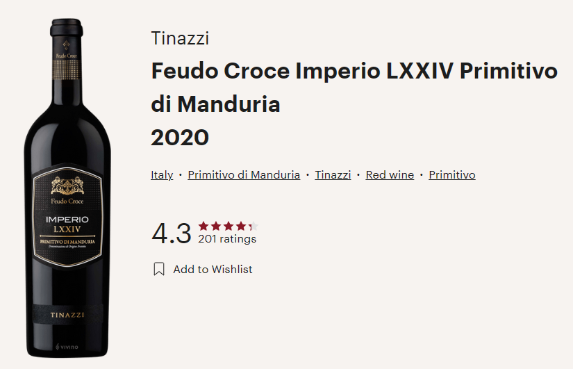임페리오 74 프리미티보 디 만두리아 TinazziFeudo Croce Imperio LXXIV Primitivo di Manduria