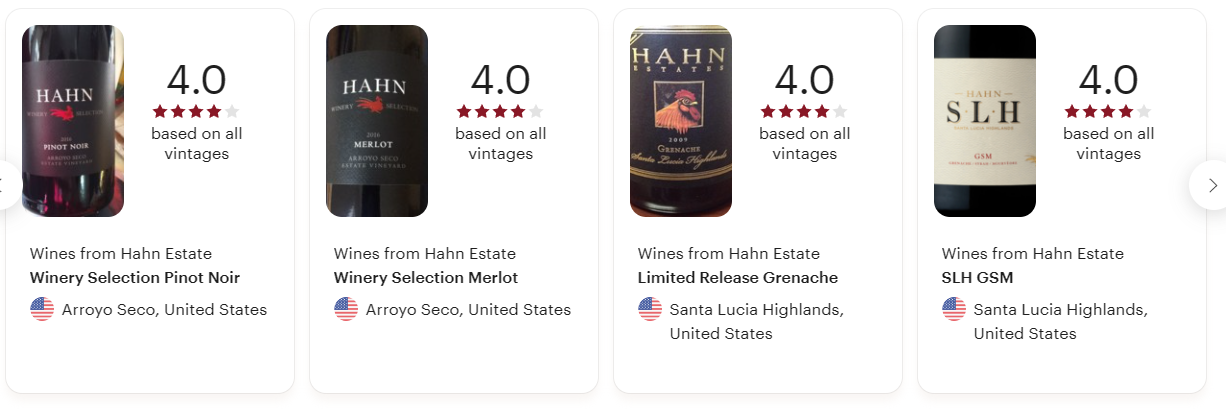 Hahn Family Wines에서 생산되는 주요 와인 중 일부: