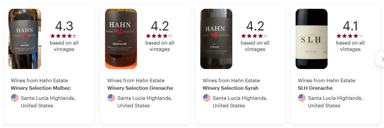 Hahn Family Wines에서 생산되는 주요 와인 중 일부: