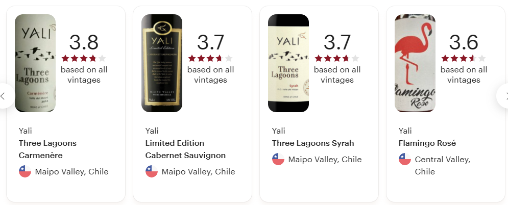 (출처: 비비노 Vivino, 네이버 지식백과, www.yali.cl )