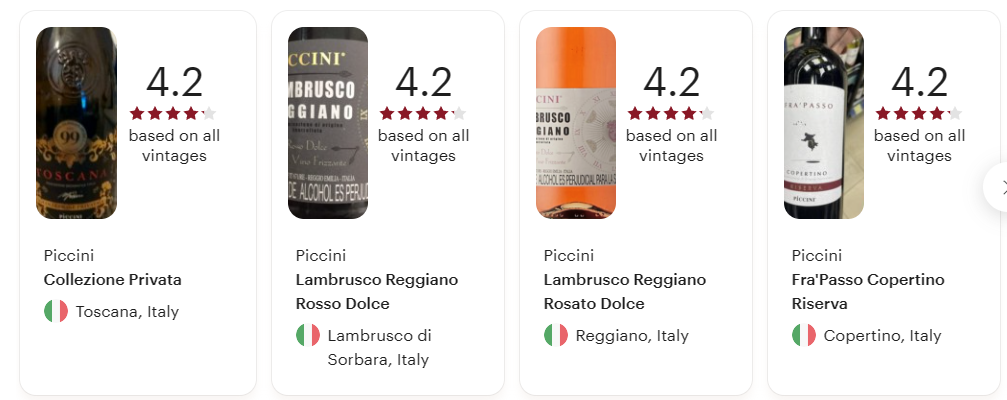 (출처: 비비노 Vivino, 네이버 지식백과, piccini1882.it/en/ , GPT)