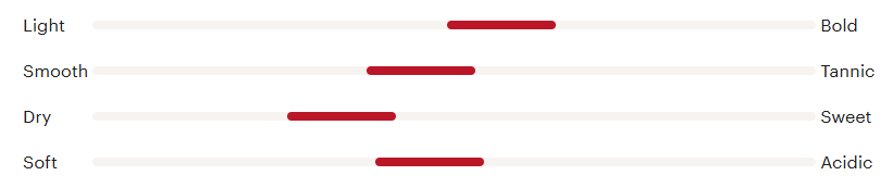 2. 품종 :카베르네 소비뇽 (Cabernet Sauvignon) 23%, 쁘띠 베르도 19%, 메를로 16%, 바르베라 11%