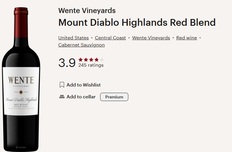 웬티, 디아블로 하이랜드 레드 블렌드, Wente VineyardsMount Diablo Highlands Red Blend
