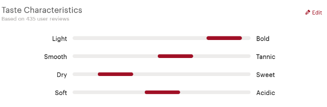 3. 와인 맛의 특징: 탄닌과 산도는 중간 정도이며, 무게감이 무겁고 드라이한 와인입니다.