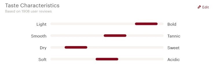4. 와인 맛의 특징: 바닐라 향과 블랙베리 등 과실향이 풍성한 스탠다드한 캘리포니아 카쇼 스타일로 부드러운 질감과 향의 퀄리티가 가격대를 뛰어 넘습니다.
