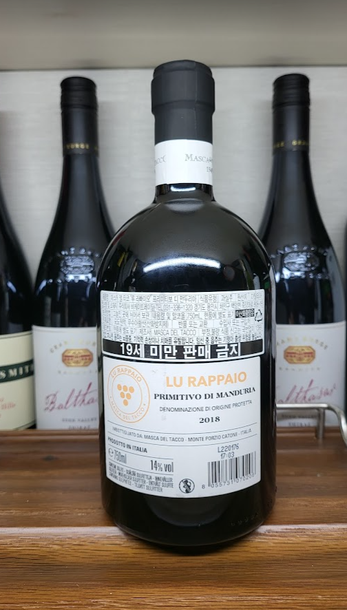 Masca del Tacco, Lu Rappaio Primitivo di Manduria와인은 이태리 Puglia지역에서 생산하고 있는 Red와인입니다.