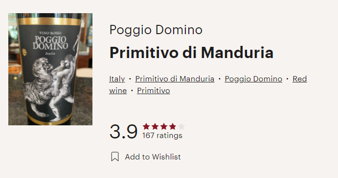이탈리아와인, 포지오 도미노 프리미티보 디 만두리아 Poggio Domino Primitivo di Manduria (비비노 평점 3.9)