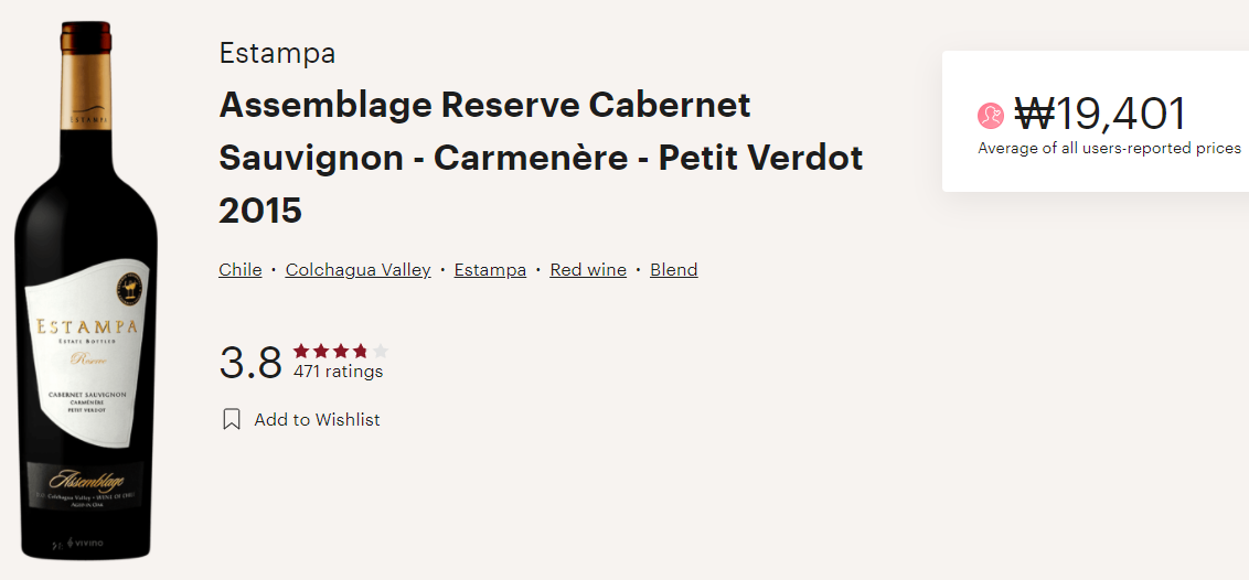 칠레와인, 에스탐파, 리저브 아상블라쥬 까베르네 소비뇽 Estampa, Estate Reserve Assemblage Cabernet Sauvignon (비비노평점 3.8)