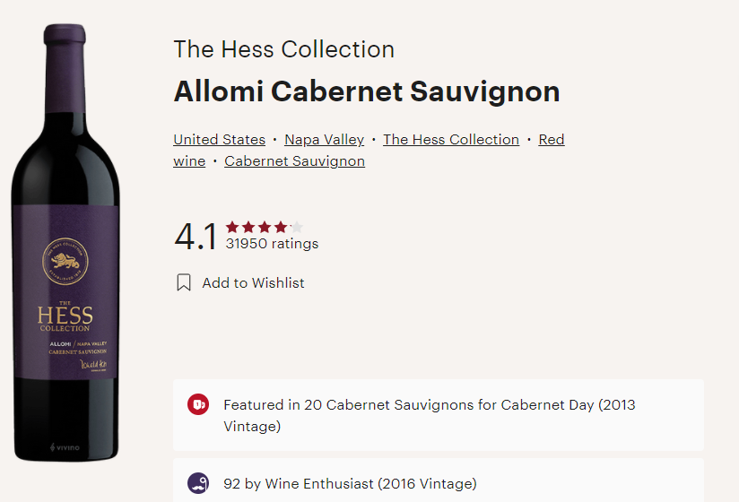 미국와인, 더 헤스 컬렉션 알로미 카베르네 소비뇽, The Hess Collection Allomi Cabernet Sauvignon (비비노평점 4.1)