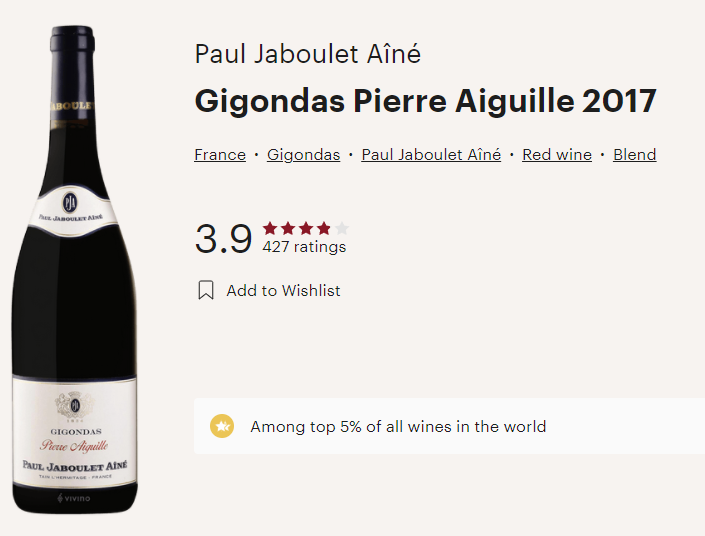 프랑스와인, 폴 자불레 애네, 지공다스 삐에르 애기 ,Paul Jaboulet Aîné Gigondas Pierre Aiguille 2017 (비비노평점 3.9)와인추천