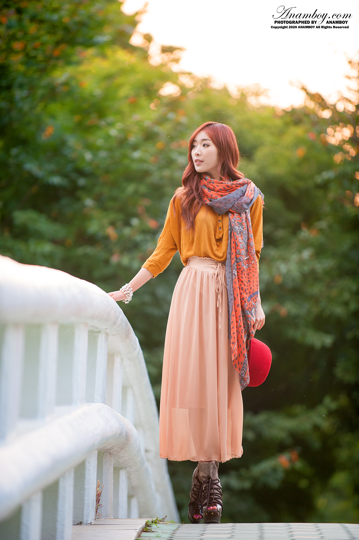 주황색 의상과 빨간모자 신발까지 정말 청순하면서 분위기 살려주는 최고의 아이템인 듯합니다.