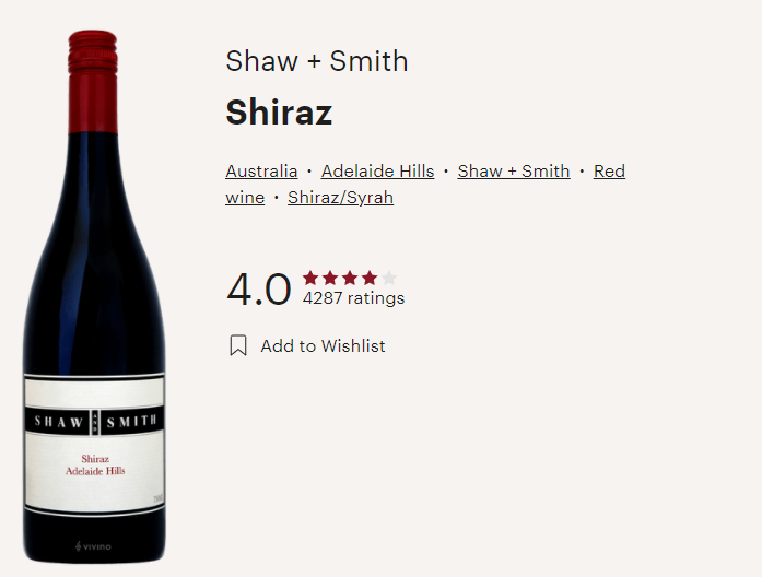 호주와인, 쇼 앤 스미스, 쉬라즈Shaw & Smith, Shiraz (비비노평점 4.0)