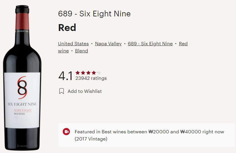 미국와인, 689 레드 나파 밸리 689 Red Napa Valley (비비노평점 4.1)