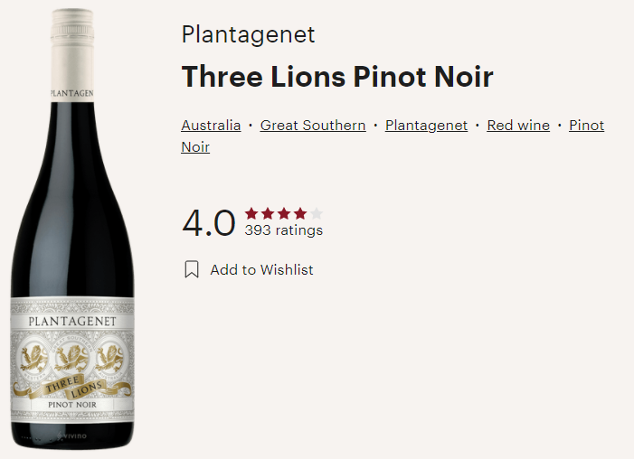 호주와인, 쓰리 라이온즈 피노 누아 Three Lions Pinot Noir (비비노평점