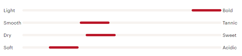 중간정도의 산도와 높은 알콜 무거운 바디감에 마시는 것만으로도 좋은 와인이구나를 느낄 수 있는 맛입니다.