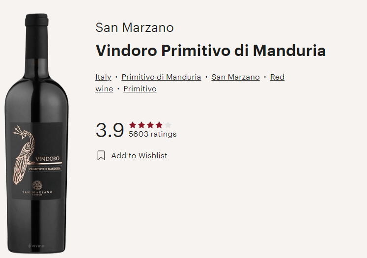 이탈리아와인, 산 마르짜노, 빈도로 프리미티보 디 만두리아 San Marzano, Vindoro Primitivo di Manduria (비비노평점 3.9)