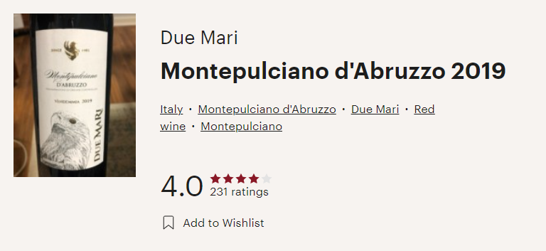 이탈리아와인, 두에 마리 몬테풀치아노 다브루쪼 Due Mari Montepulciano d'Abruzzo (비비노 평점 3.9)
