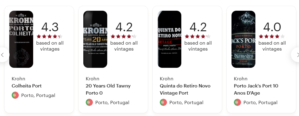 그 이후로 이 회사는 오래된 캐스크 숙성 항구, 특히 19세기의 희귀 와인을 보유하고 있는 '콜헤이타스(Colheitas)' 또는 단일 수확 토니로 뛰어난 명성을 쌓았습니다. Krohn은 또한 리오 토르토 계곡의 주력 Douro 부동산인 Quinta do Retiro Novo에서 공급되는 정교하게 구성된 빈티지 포트로도 유명합니다.