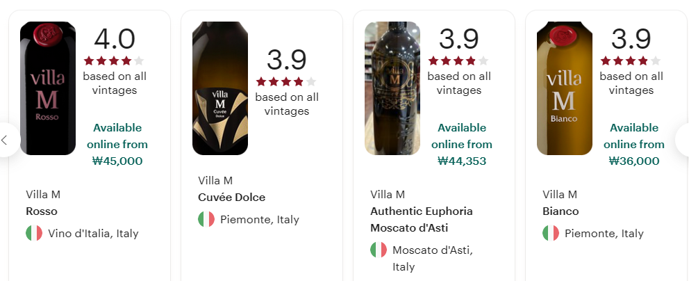 이탈리아와인, 빌라엠 Villa M Authentic Euphoria Moscato d'Asti (비비노 평점 3.9)