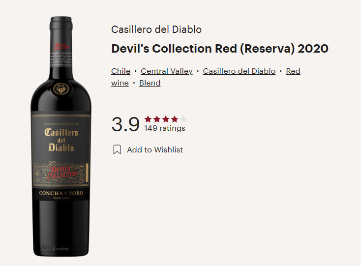 칠레와인, 카실레로 델 디아블로 데빌스 컬렉션 레드, Devil's Collection Red (Reserva) (비비노 평점 3.9)
