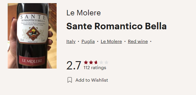 이탈리아와인, 쌍떼 로맨티코 벨라 Sante Romantico Bella (비비노평점 2.7점)