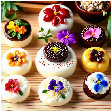 전통 잔기지떡의 모습입니다. 다양한 형태와 색감으로 사람들의 눈길을 사로잡습니다.